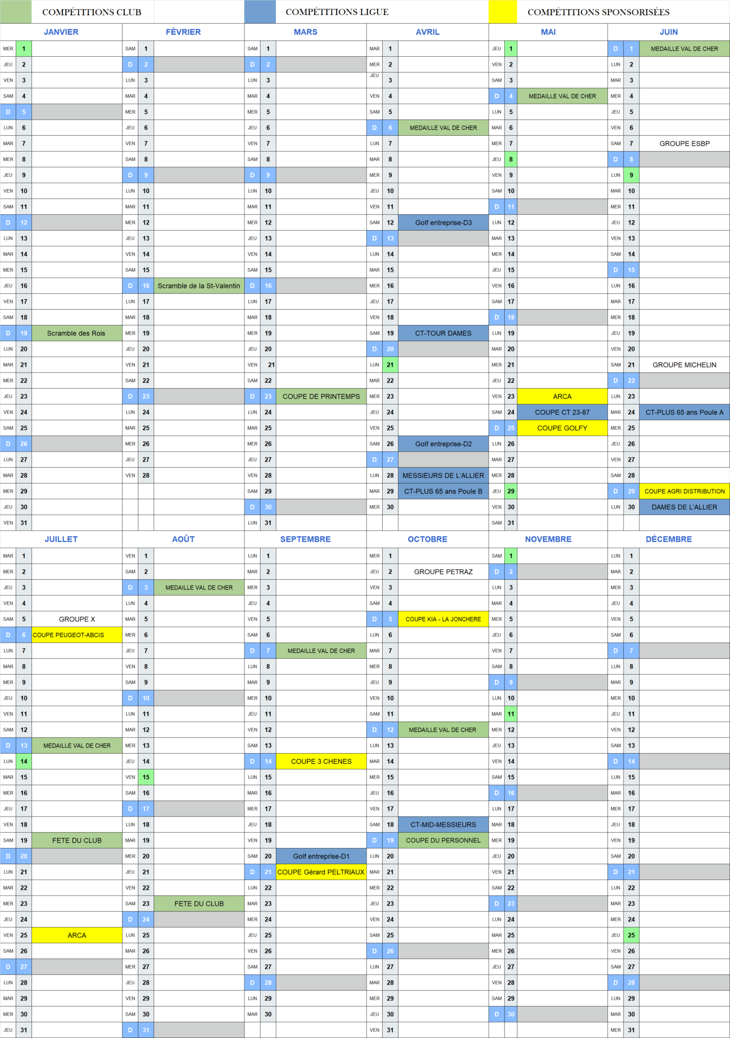 Calendrier des compétitions 2025 - Golf Club du Val-de-Cher